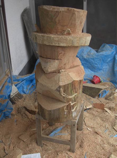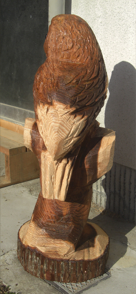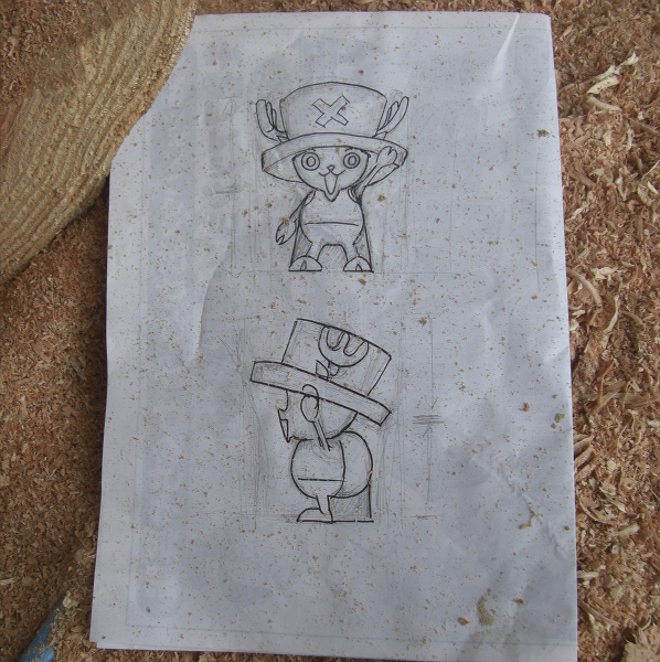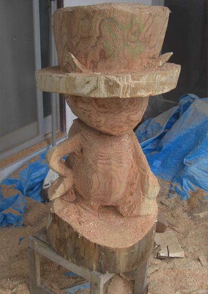 ノミで削ることも考えましたがそれはチェーンソーアートではなくなっってしまいます。